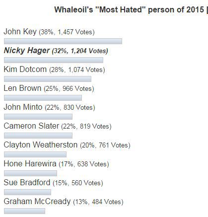 To avoid becoming the most hated New Zealander for 2015 Cameron Slater quickly shut down his own poll to avoid embarrassing himself. In a prejudice poll that is made up of predominantly members of the Mana Movement avoiding personalities from National like Gerry Brownlee and Mike Sabin. I have absolutely no idea who “Harewira” is supposed to be maybe it’s in reference to Mana leader “Hone Harawira”.
